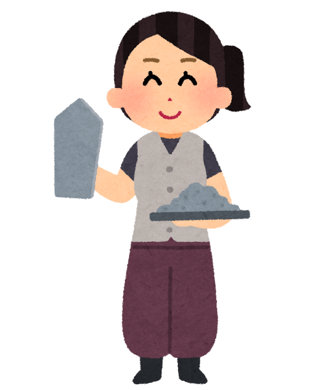セメント、砂などの資材を台車などを使っての搬入作業となります。